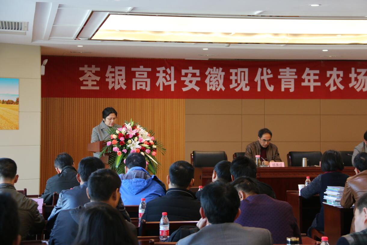 2017年3月27日上午,荃銀高科安徽現(xiàn)代青年農(nóng)場(chǎng)主2016級(jí)培訓(xùn)班開(kāi)班儀式在肥舉行。合肥市農(nóng)委主任夏倫平、共青團(tuán)安徽省委農(nóng)村工作部副部長(zhǎng)陳永剛、安徽農(nóng)業(yè)大學(xué)農(nóng)學(xué)院黨委副書(shū)記鄢高翔、荃銀高科董事長(zhǎng)張琴等領(lǐng)導(dǎo)出席開(kāi)班儀式。來(lái)自合肥、滁州、馬鞍山、六安、銅陵、池州、蕪湖、宣城、黃山、安慶等地從事種植業(yè)的84名青年農(nóng)場(chǎng)主參加了培訓(xùn)。開(kāi)班儀式由安徽省農(nóng)委科教處副處長(zhǎng)程世根主持。