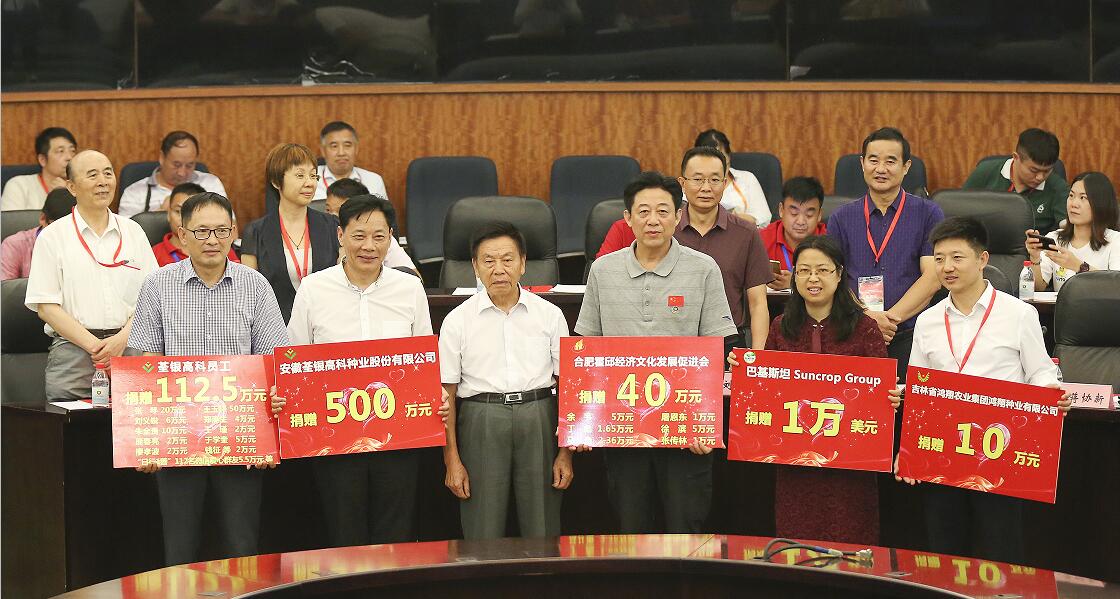 善人者,人亦敬之。張海銀種業基金會五年來的公益慈善活動得到社會各界愛心人士和愛心單位600余次的的慷慨捐贈,累計950多萬元。會上還進行了基金會2018年公益愛心捐贈儀式。荃銀高科母子公司高管和員工多次參與基金會濟困助學公益慈善活動,本次捐贈112.5萬元;吉林鴻翔種業集團鴻翔種業有限公司捐贈10萬元;巴基斯坦Suncrop Group(陽光作物集團)捐贈1萬美元;合肥霍邱經濟文化發展促進會及會員為基金會貧困助學項目捐贈40萬元;安徽荃銀高科種業股份有限公司捐贈500萬元。基金會將按捐贈人捐贈的意愿和在業務范圍內開展公益項目和慈善活動。