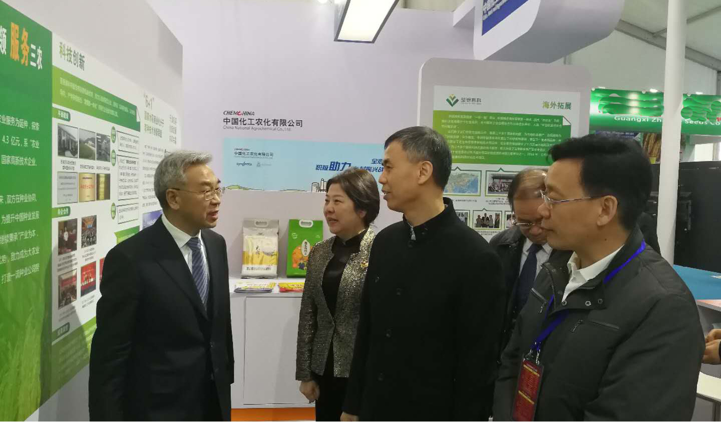 ??? 中化農業總裁、荃銀高科董事長覃衡德先生,“中國種業十大功勛人物”、公司創始人張海銀先生等領導、專家蒞臨荃銀高科展廳巡展。
