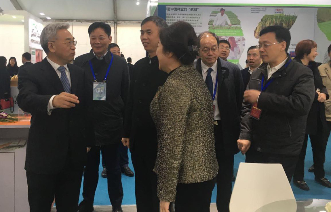 ??? 荃銀高科展廳重點從科技創新、科企合作、農業社會化服務、人才培養、產業體系及海外開拓、履行社會責任等方面展示企業風采,張桃林副部長給予肯定。