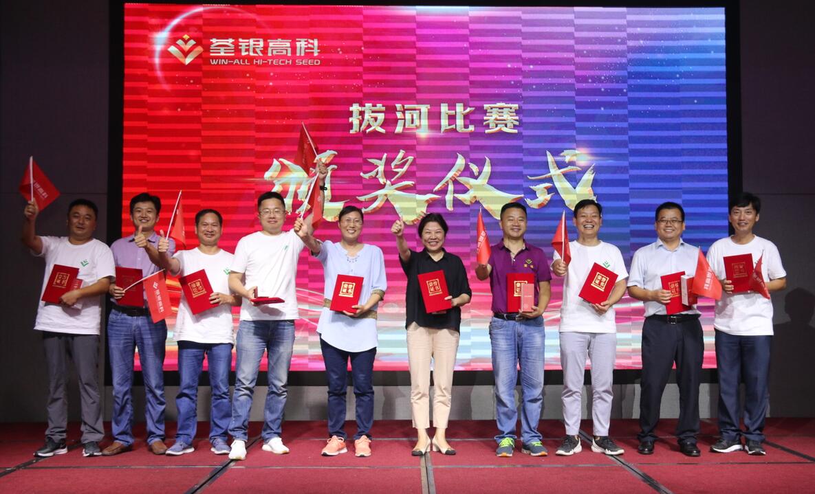 ??? 8月9日,在荃銀高科2019經營年度分析研討會前,公司舉辦了拔河比賽,以凝聚人心,鼓舞士氣。集團公司高管及部門負責人,20家子(分)公司、專業(yè)公司總經理、營銷副總經理及財務總監(jiān)60余人參加此次活動。